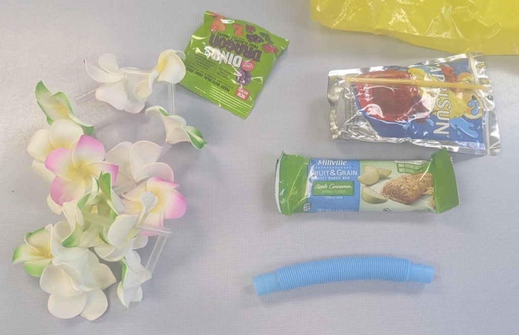 Chicken Strips, Fruit Cocktail, Mac & Cheese, Lorna Doone cookies & Lemonade